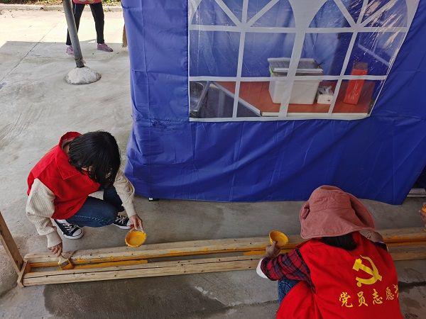 为进一步标准校内外泊车次序,创建文明学校,4月7日,南市街道复夏小学党员、团员教师、青年教师使用课余时刻画泊车位。