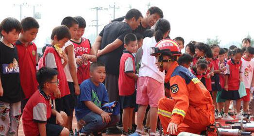 活動中,消防宣講員為學生發放《中小學生消防安全教育》讀本,並圍繞學校消防安全作業,依照「會報警、會逃生」的要求,向師生們具體解說了發生火災怎麽正確報警、火災的防備和初起火災撲救,火場怎麽安排人員分散、怎麽逃生自救以及家庭防火消防常識。為了讓師生們更加深化了解消防配備器件,消防員為師生現場展現並具體解說了消防救援器件的名稱、用途及運用方法。