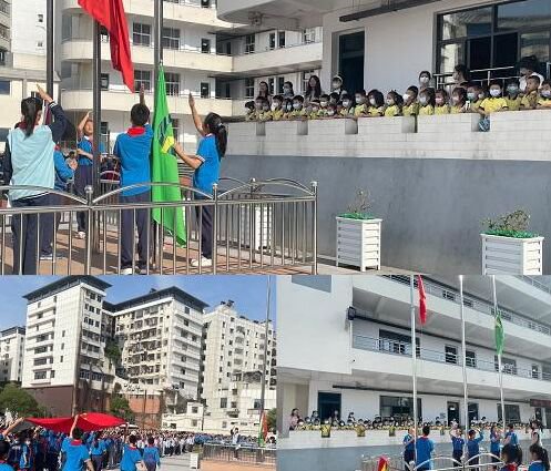 五月,空氣清新,舒適宜人。鳧山小學副校長樂慧寰、教訓處主任祝淑藍帶領著鳧山幼兒園的教師及孩子們走進校園。鳧山小學的學生們穿戴潔凈的校服,規整地排好了隊,舉辦升旗儀式。此刻,鳧山幼兒園的教師及孩子們也已排列規整,鳧山次參加小學升旗儀式,認真地行註目禮,看著五星紅旗頂風飄蕩,慢慢地升起。