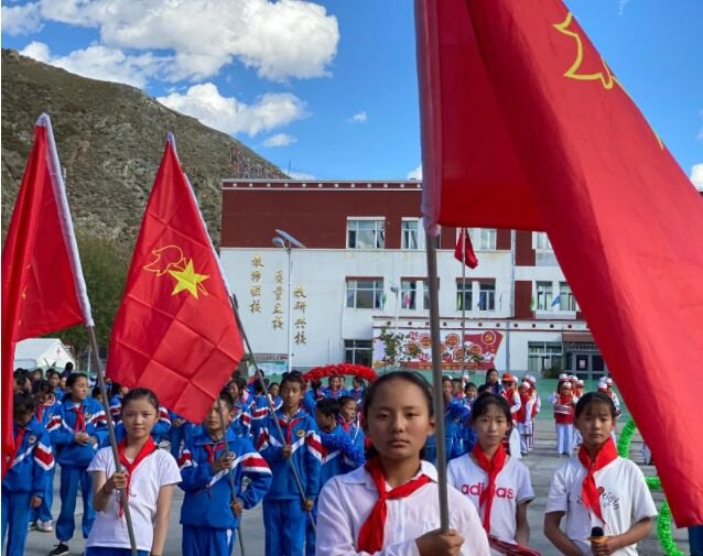 少先队员们每一位师生将接过爱的火炬学会感恩学会奉献